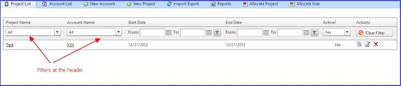 The project list screen is redesigned to make it easier to search for projects. Also, the following new fields have been added to the project: